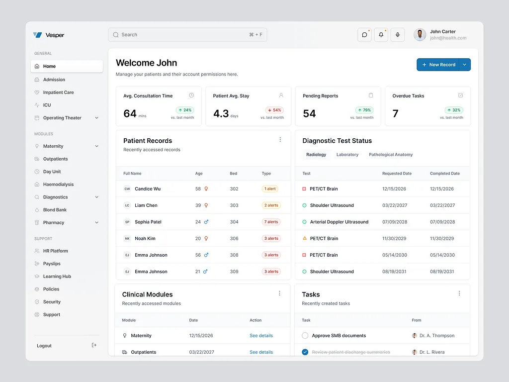 Product and UX design for healthcare platforms supporting digital transformation across clinical and operational systems.